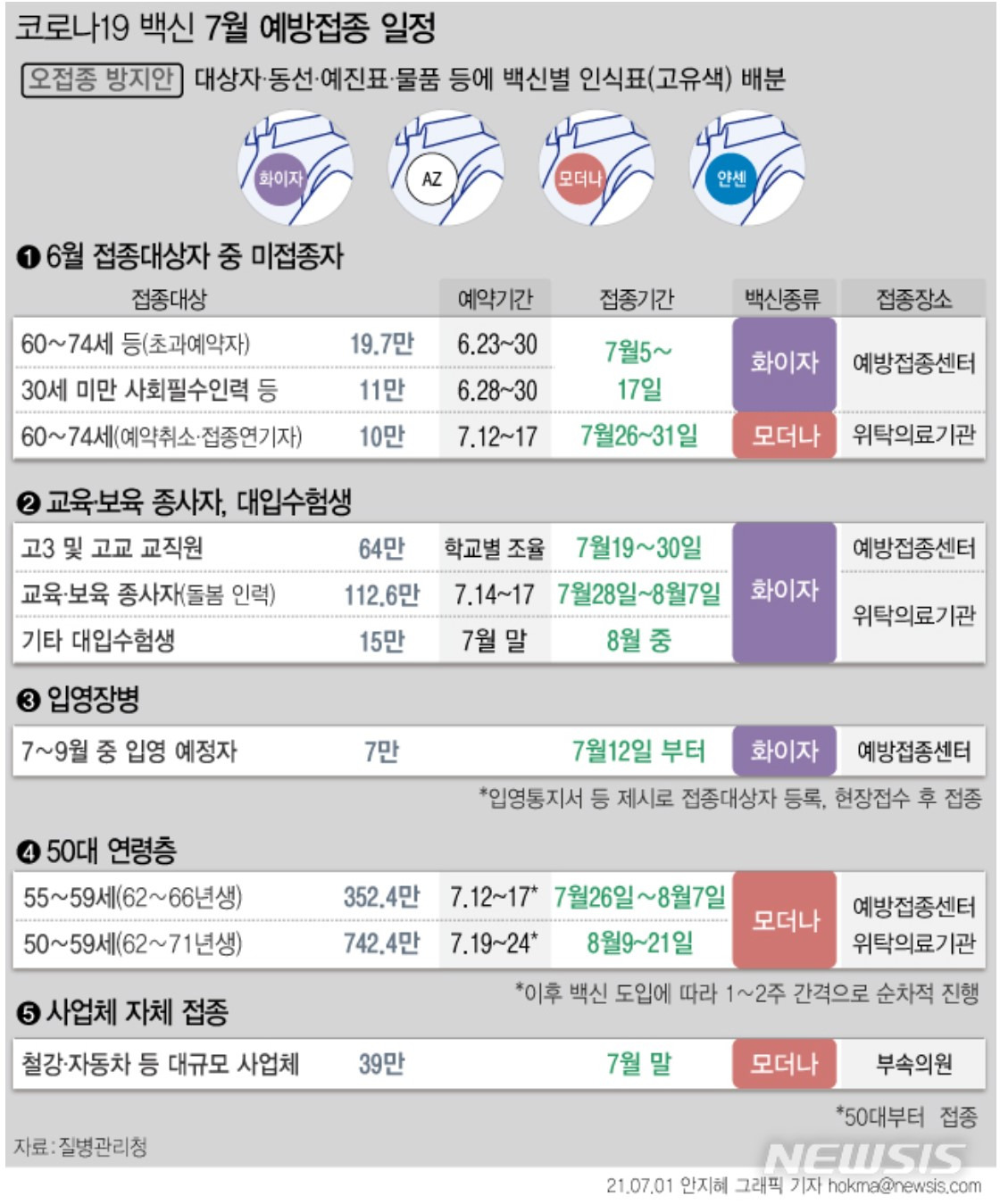 오늘 오후 1시부터 카톡·네이버로 잔여백신 신청 / 카톡 탭, 지도에 병원, 수량 표시 / 본인인증 뒤 예약 가능…주변 의료기관 알람 설정 55∼59세 백신예약 첫날 또 '먹통'…새벽 3시에 80만명 동시접속. 1일부터 코로나19 백신 접종자에 대해 직계가족 모임 인원 기준 제외 등이 시행되면서 당초 일정보다 서둘러 백신을 맞으려는 사람이 늘고 있다. 코로나 백신 접종 예약을 진행하게 되면 현재로써는 접종일자까지 시간이 여유가 있다고 생각합니다. 백신접종 정보 및 예약신청 결과 배정은 질병관리청에서 담당하며 예약신청 후 확정까지는 보장되지 않습니다.