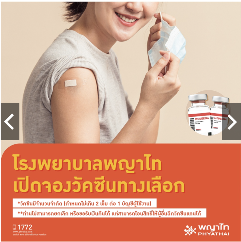 โรงพยาบาลพญาไท 2 แจ้ง ปิดรับจองวัคซีนทางเลือก โมเดอร์นา (moderna) ภายหลังจากที่เปิดให้จองไปเมื่อช่วง 12.00 น.
